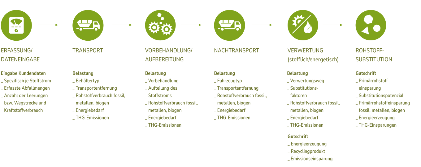 Der Einsatz von Recyclingrohstoffen ist einer der wichtigsten entlastenden Faktoren des gesamten Stoffkreislaufs. Auch stofflich nicht verwertbare Materialien fließen positiv in die Bilanz ein, sofern sie zur Energieerzeugung genutzt werden können.
